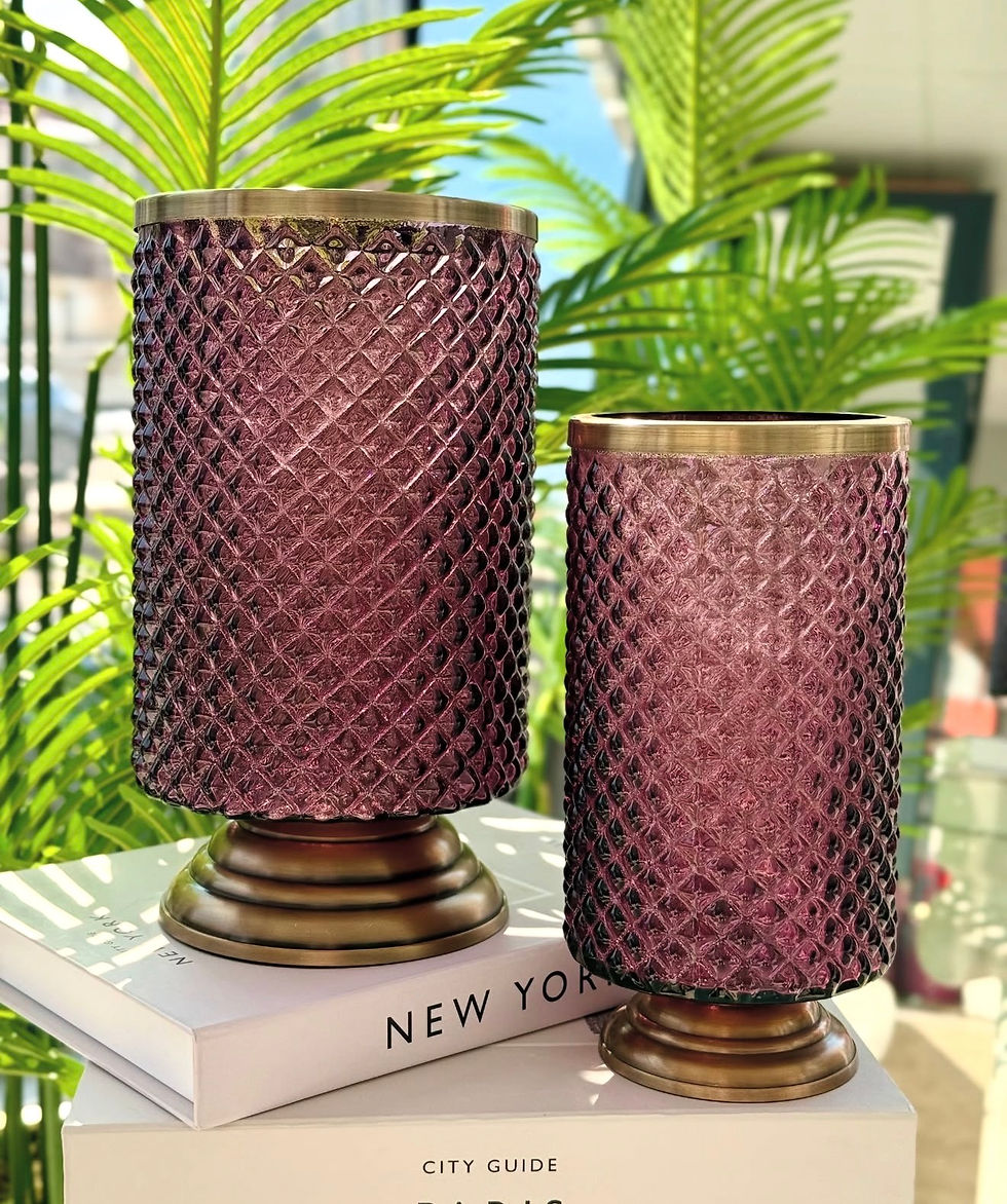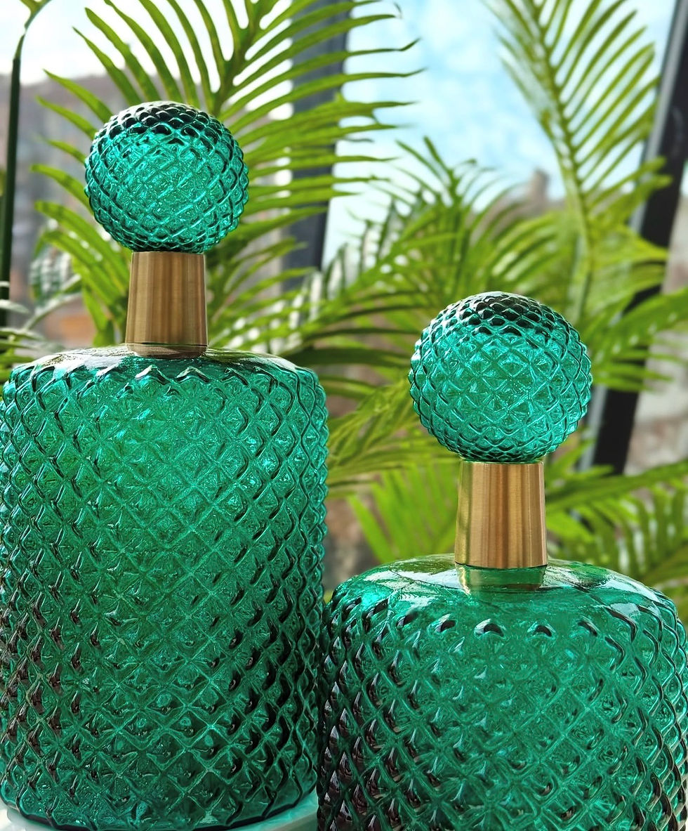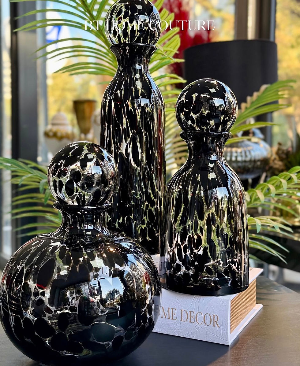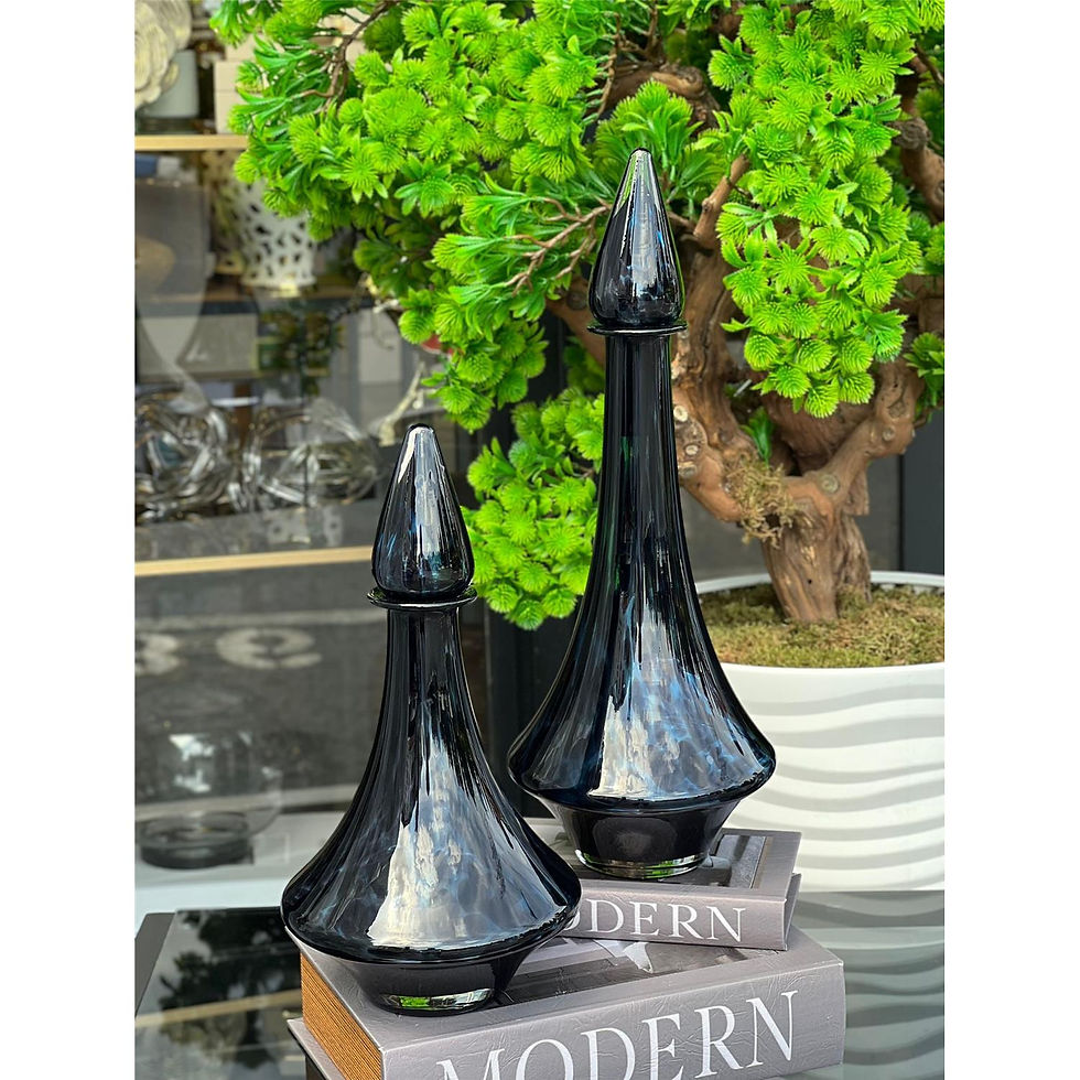 2'li İthal Mavi Leopar Triora Cam Vazo Set